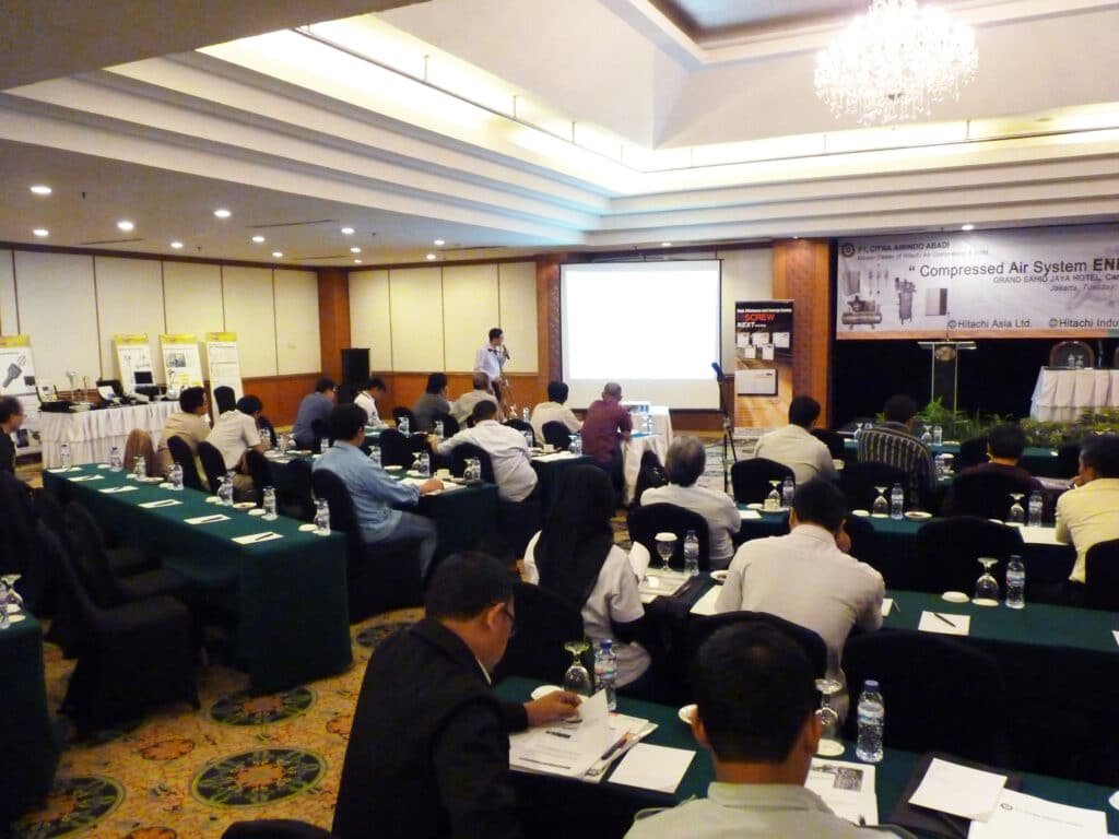 Hence Citra Group, as the Master Dealer for Hitachi Air Compressors at Indonesia, together with our other partners, through the seminar “COMPRESSED AIR SYSTEM ENERGY SAVING SOLUTION ”aims to share how we can help reducing the overall air compressor system energy costs and improving your productivity. This seminar was held on Tuesday, April 15th 2014 at Grand Sahid Jaya Hotel – Jakarta. The entire seminar was filled with enthusiastic visitors extraordinary when attending this seminar.