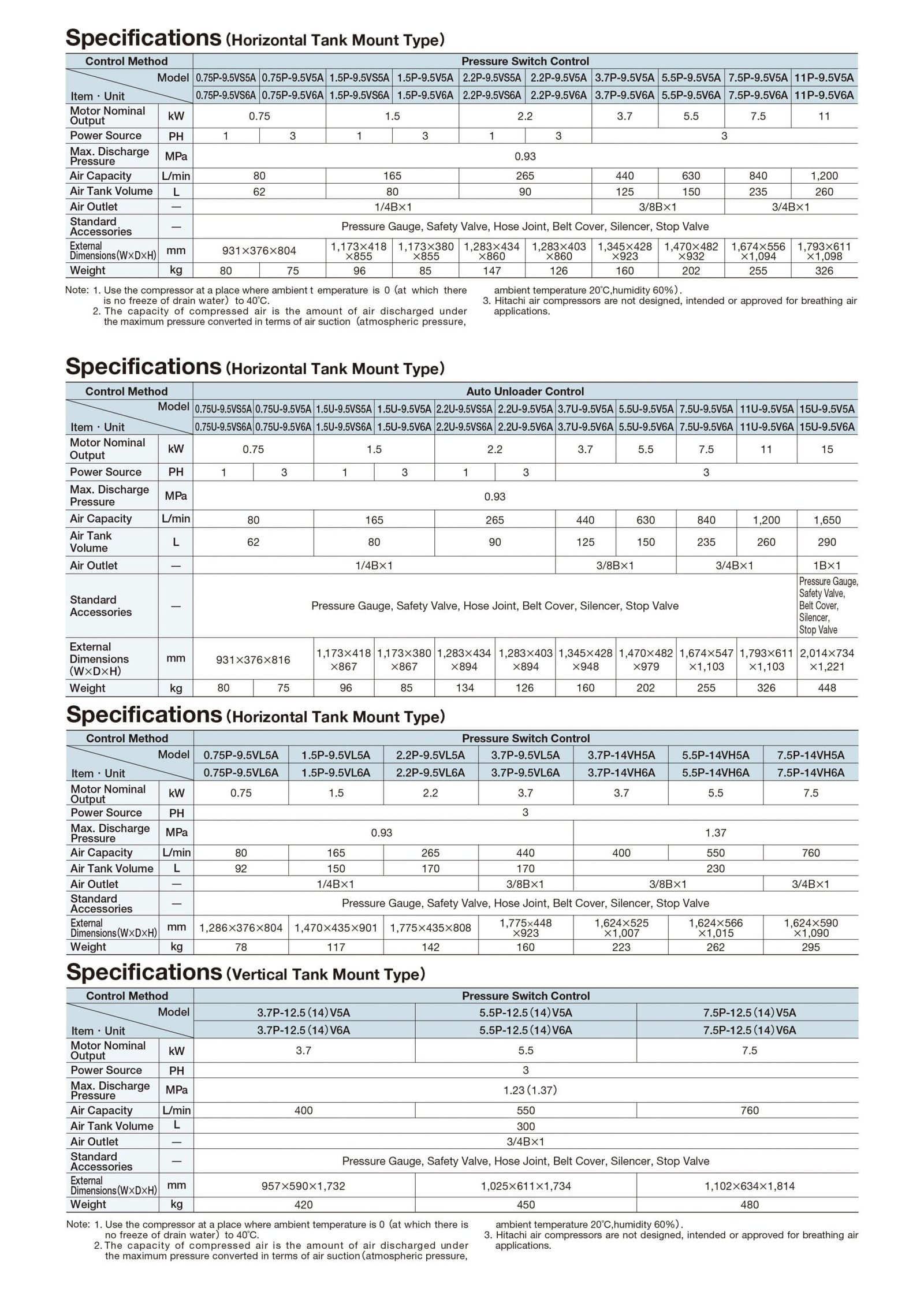 - Each air compressor has been designed so as to ensure a logical arrangement of the motor and control device, and to locate the gravity center as low as possible for the purpose of stabilization. Thus, installation is possible with minimal space. Both handling and transport have been made easier.
