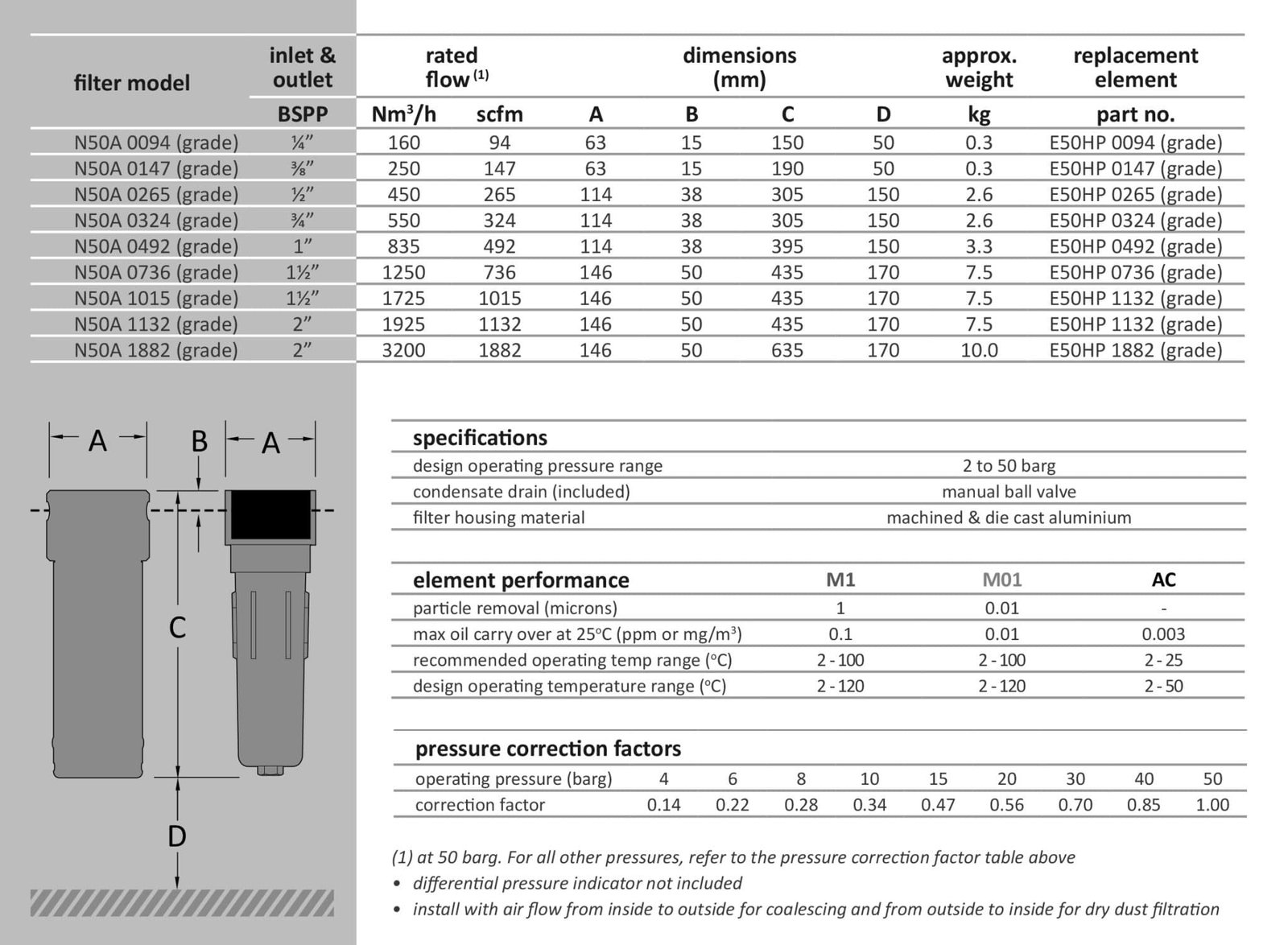 These filters incorporate an innovative push-fit element design with dual o-ring seals to ensure optimum sealing and mechanical strength.