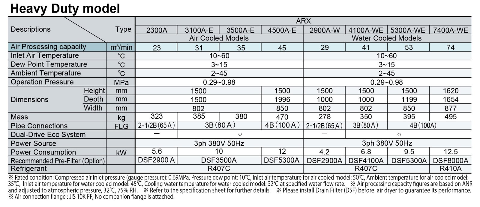 Operates under ambient temperature of up to 45 ° C. Large model specialized for high flow rate. Air-cooled type : ARX2300A/ ARX3100A-E/ ARX3500A-E/ ARX4500A-E. Water-cooled type : ARX2900A-W/ ARX4100A-WE/ ARX5300A-WE/ ARX7400A-WE