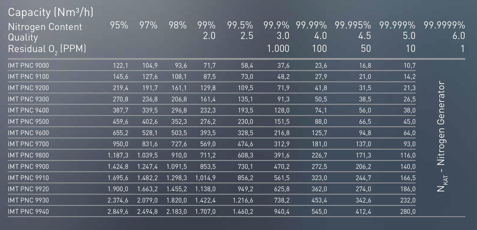 The IMT PNC series enables the generation of ultrapure nitrogen (6.0) at low cost and with full control of all operating values.