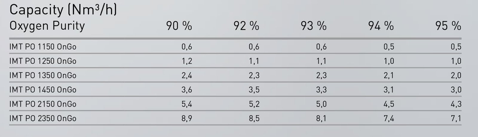 Our INMATEC OnGo oxygen technology produces oxygen with a purity of up to 95 %, and in quantities of 0,5 – 8,9 Nm3/h.