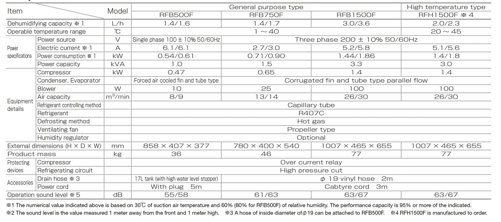 - Slim and Compact. Easy movement (by casters) to places where dehumidifying is needed. Patented (RFB500F has various options).